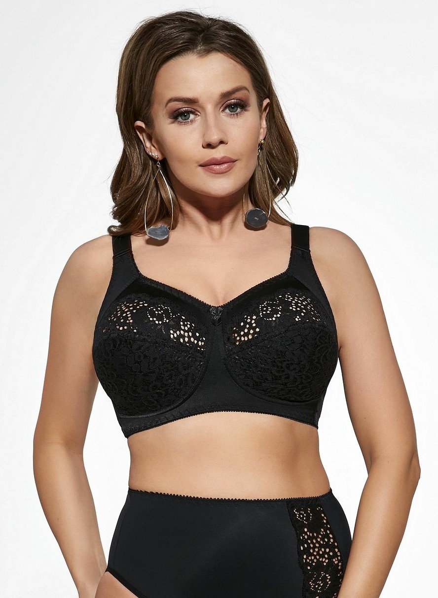 – wykonany z koronki, wnętrze misek podszyte delikatną bawełną
